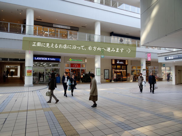 △ 信号を渡ってまっすぐ商店街をまっすぐ進みます。
