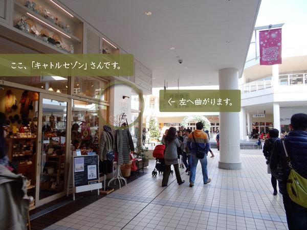 △お店に沿って進み、「キャトルセゾン」を左に曲がります。